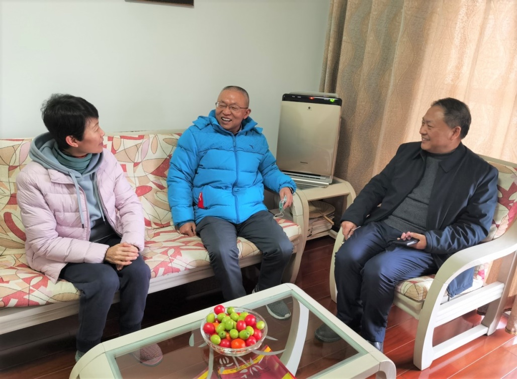 春節將至,年味漸濃。1月26日上午,安徽國貿黨委書記、董事長何傳友前往國貿本部退休老同志何宗明、呂蓓等人家中看望慰問,送上黨組織和公司的關懷。安徽國貿工會主席劉業明及有關部室人員陪同慰問。
