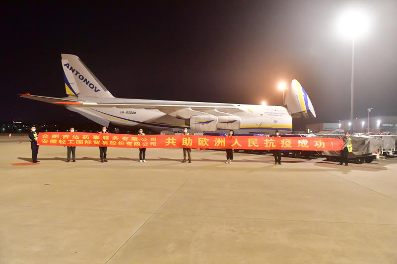 一架載有100萬(wàn)只口罩的捷克軍機(jī)安124型大型運(yùn)輸機(jī)起飛駛向捷克。這批由安徽輕工國(guó)際貿(mào)易股份有限公司代理出口的防疫物資,從3月16日確認(rèn)訂單,到3月24日首批出運(yùn),創(chuàng)造了輕工速度、輕工服務(wù)、輕工效率!