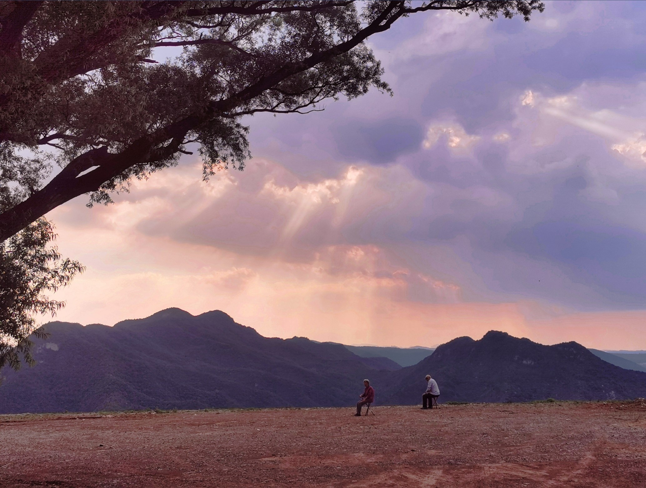 《留守老人》-安糧實業(yè)-呂金鳳,2021年6月,游山西南太行大垴村后,傍晚下山途中,路過太行山下的一個不知名的村莊,在夕陽下的照射下,兩位孤獨的老人,靜靜的坐在山腳下, 無怨無悔的守護著自己的家園