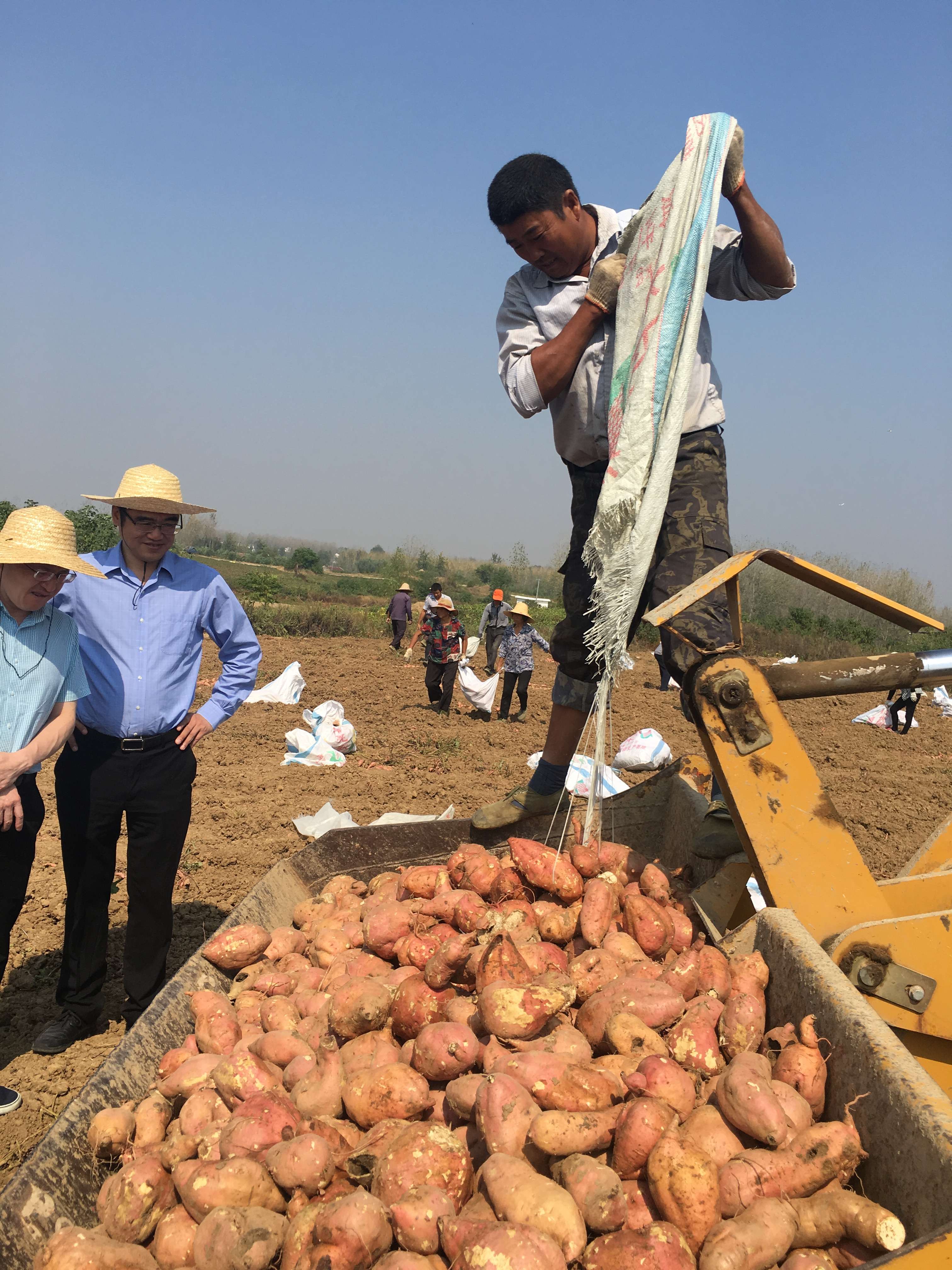 《脫貧紅薯豐收了》-國貿本部-李明輝,2019年9月29日,攝于霍邱縣馮瓴鄉花墻村。該村過去是省級貧困村,2016年安徽國貿及安糧集團聯手對該村實施產業扶貧,引進適合出口的紅薯品種種植,優先吸收貧困戶勞動力前來務工?,F該村順利脫貧,紅薯出口到日本、韓國等國家,并加工成多種食品,進入千家萬戶。