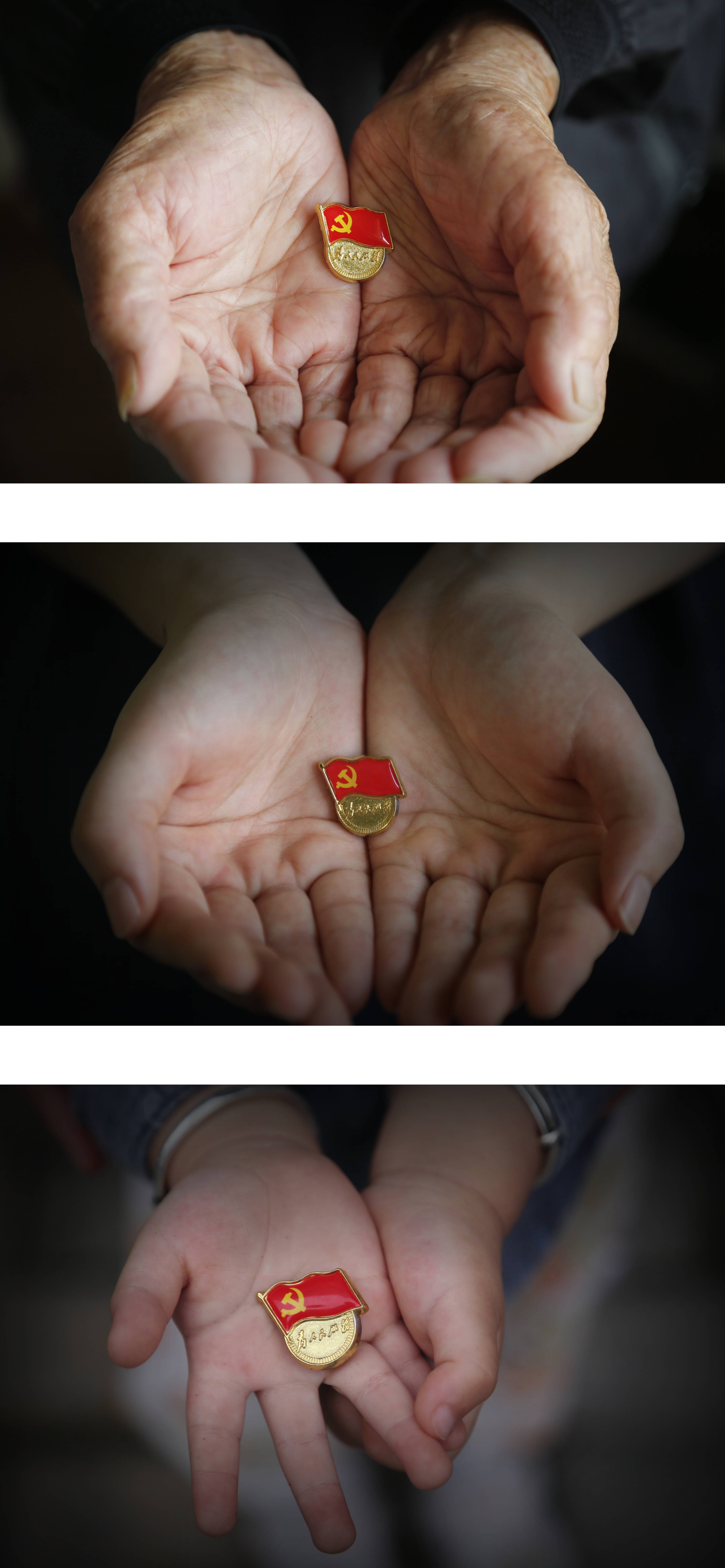 《傳承》-安糧期貨-郝曉巍,2021年6月攝于合肥。作品以“傳承”為立意,通過老青幼三代人手捧黨徽的畫面,表達了長輩對晚輩的期望與寄語,繼承光榮傳統,弘揚革命精神,傳承紅色基因。